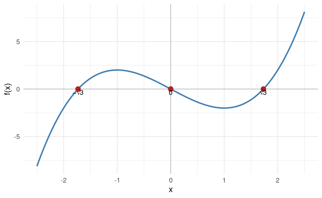 - Genau 3 reelle Nullstellen — unabhängig von .