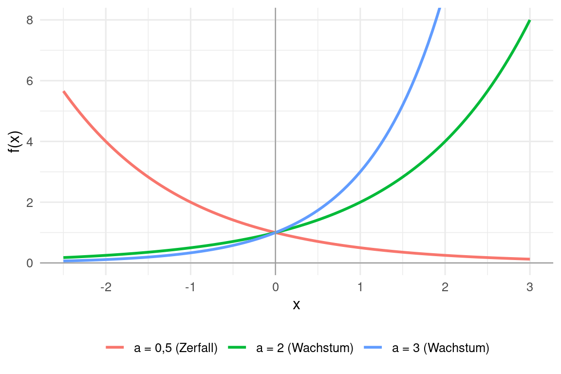 Bei exponentiellem Wachstum wird in gleichen Zeitabschnitten immer mit demselben Faktor multipliziert (konstante relative Änderung):