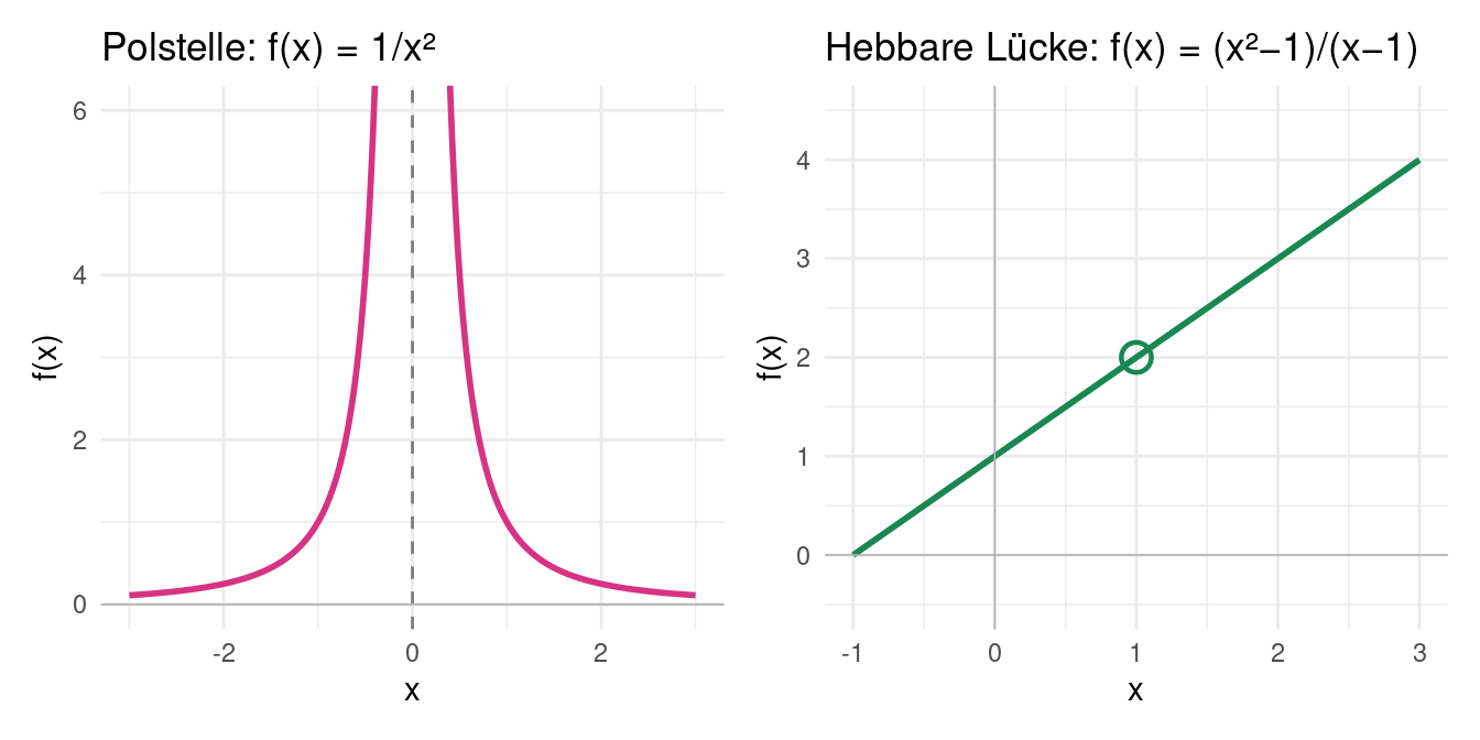 An einer Stelle, an der der Nenner null wird, kann Verschiedenes passieren — je nachdem, ob der Zähler dort auch null wird.