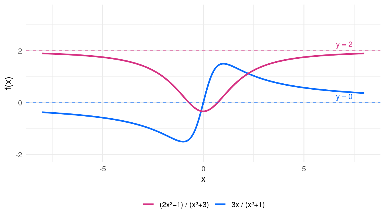 Beispiel 2: , , führende Koeffizienten 2 und 1: Waagrechte Asymptote: .