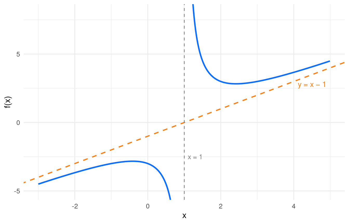 Man erhält die schräge Asymptote durch Polynomdivision: .